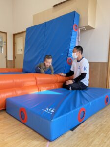毎月跳び箱の月、マットの月、エアトランポリンの月と連続で同じものが続けてならない様にしています。