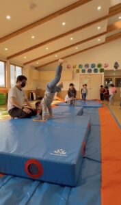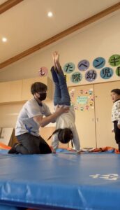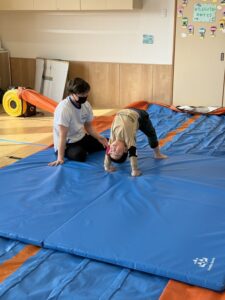 側転はみんな立てたり真っすぐ出来るようになったり、足が上がるようになったりと色々な成長がありました。