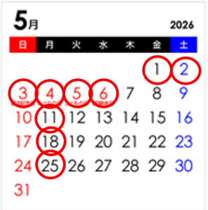 🔴は休館日となっております!