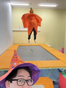 タンブリングトランポリンがあるのですが、ちひろ先生は高校生ぶりに跳んだらしくかなり苦戦していました笑